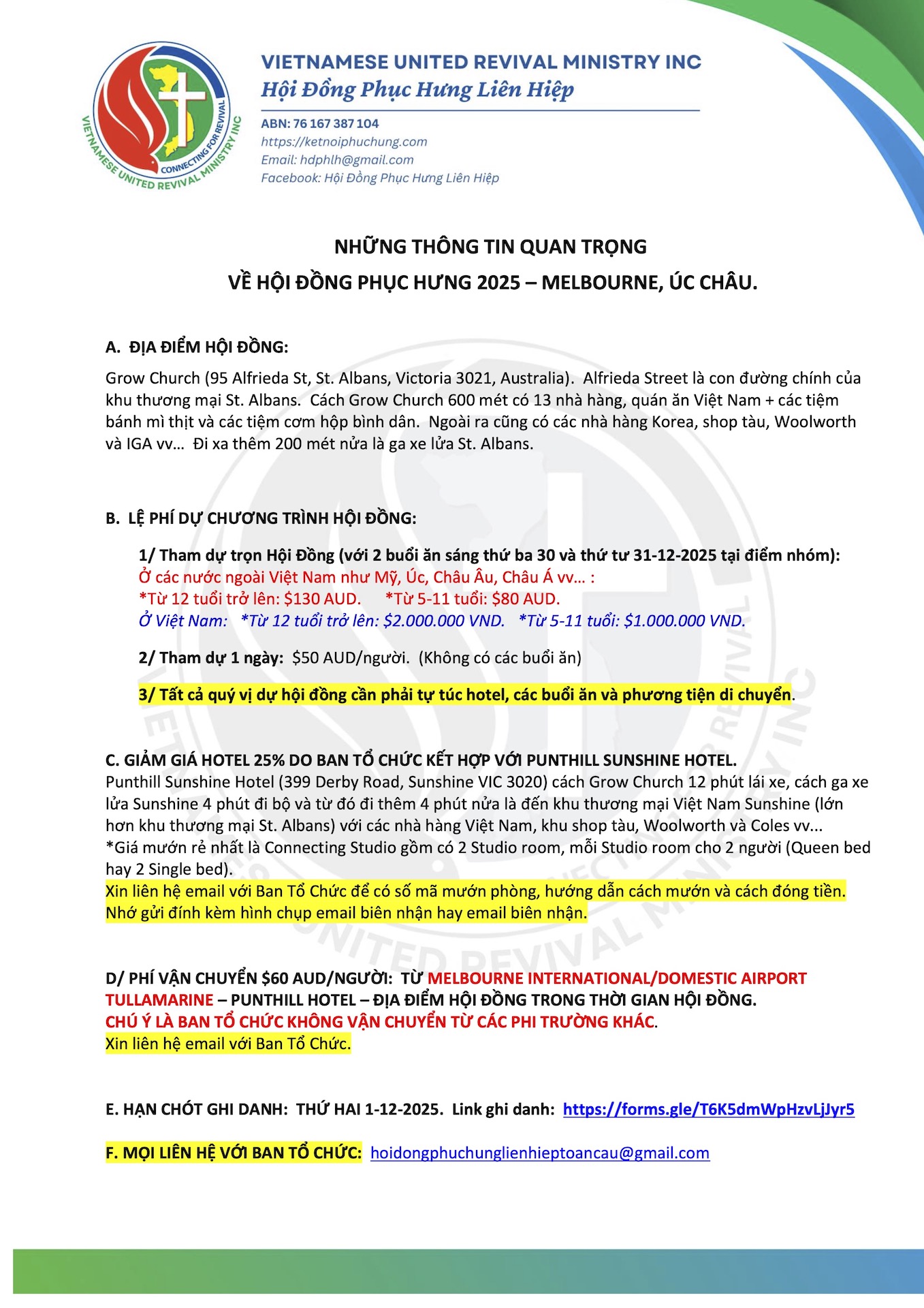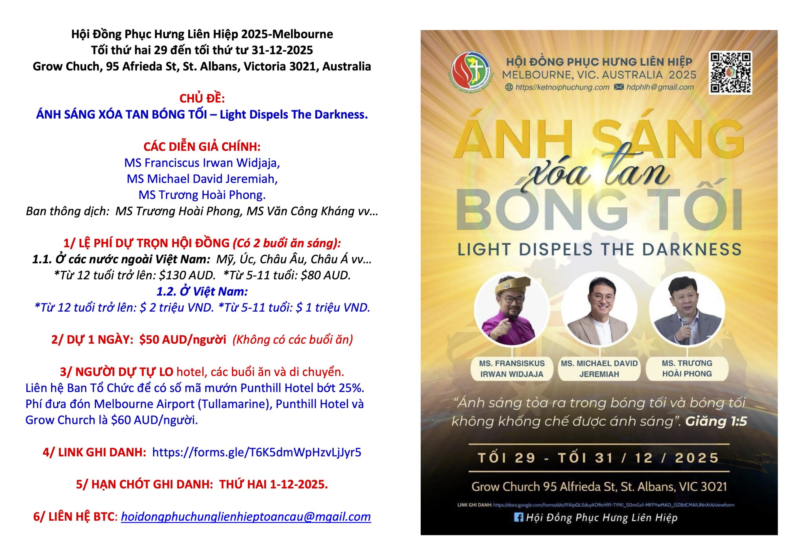 Hội Đồng Phục Hưng Liên Hiệp 2025 – Melbourne, Úc Châu: Ánh Sáng Xóa Tan Bóng Tối
